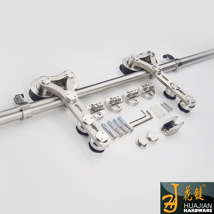 谷仓门移门套装配件包含轨道、滑轮、管夹、止动器、止摆器和防脱器等五金件,不同材质的五金件如不锈钢、碳钢和铝型材等的价格相差很大,即使同样是不锈钢如201/304/316不锈钢等所含的元素比例不同对价格的影响也很大,像元素镍含量越高价格越贵。